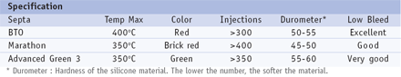 • Marathon™ - For long injection life, minimal coring. Soft, 45 durometer, easy on autosampler