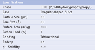 VertiPak™ Diol SPE is polar sorbent that exhibits both polar and non-polar interactions, depending on the preparation of the column and the nature of the sample matrix |