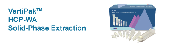 VertiPak™ HCP-WA SPE is Polyamide-Divinylbenzene Copolymer-Ethylenediamine-N-propyl (PA-DVBE) mixedmode polymeric sorbent offering both strong reverse phase interaction and weak anion-exchange interaction with interference-free extraction, compatability with LC-MS or GC-MS. |